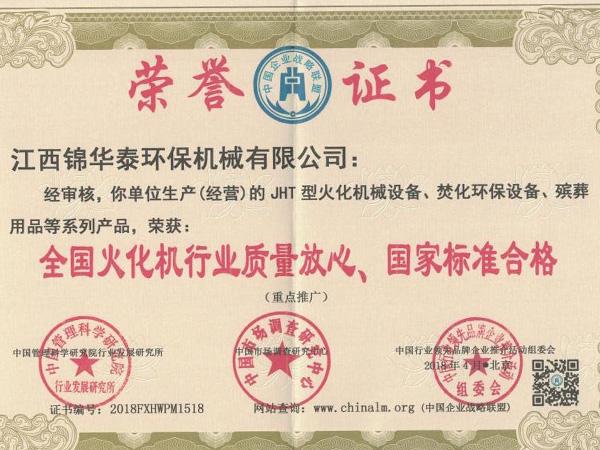 全國火化行業質量放心合格